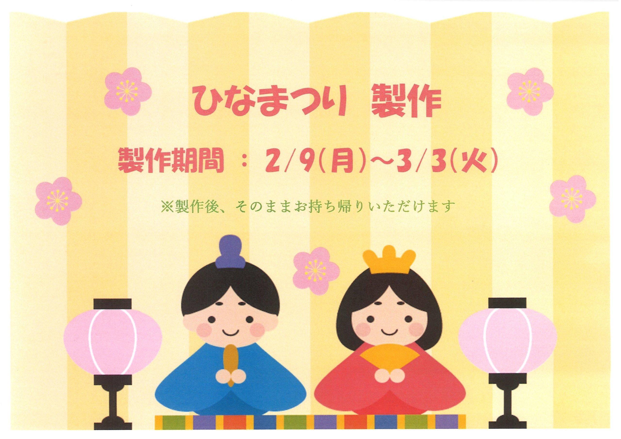 ネーブル子育て広場ネーブル子育て広場 広場製作『おひなさま』 広場製作が始まりました☆ 数に限りがありますのでお早めにどうぞ(^^♪ 2026/2/9 https://koga-kousya.or.jp/koga-kodomokosodate/wp-content/uploads/2025/02/子育て広場ロゴ_new-1.svg 0 0 スタッフ https://koga-kousya.or.jp/koga-kodomokosodate/wp-content/uploads/2025/02/子育て広場ロゴ_new-1.svg スタッフ2026-02-09 10:00:442026-01-30 17:04:30ネーブル子育て広場 広場製作『おひなさま』