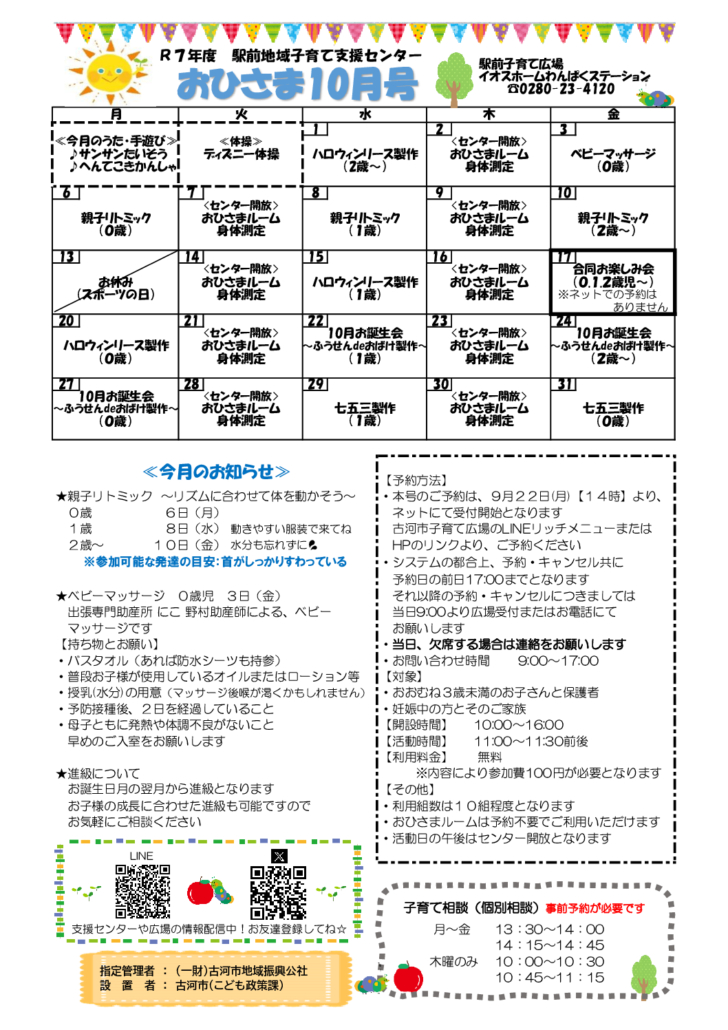 支援予定表【おひさま】10月
