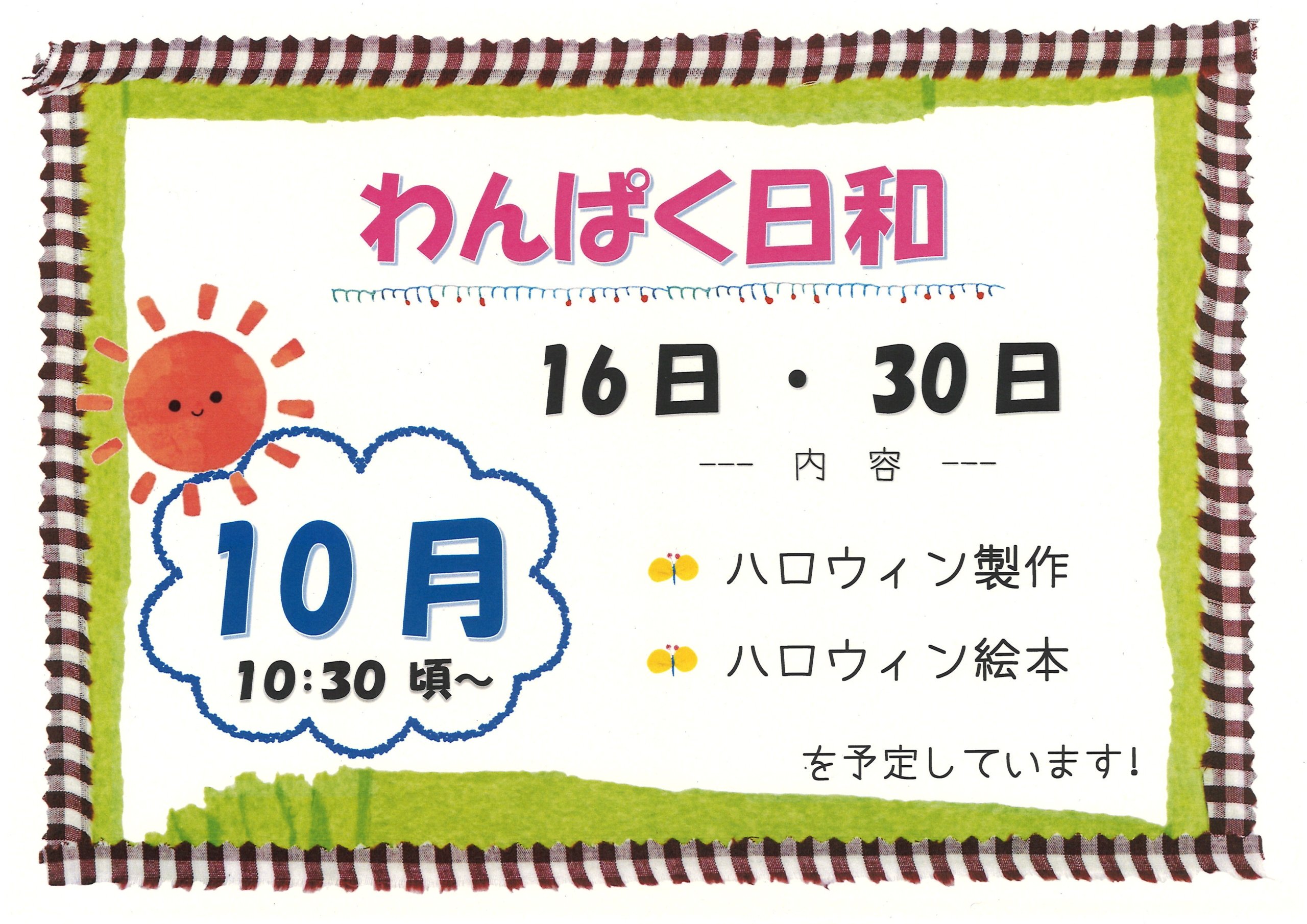 10gatuwannpaku 2025/10/8 https://koga-kousya.or.jp/koga-kodomokosodate/wp-content/uploads/2025/02/子育て広場ロゴ_new-1.svg 0 0 スタッフ https://koga-kousya.or.jp/koga-kodomokosodate/wp-content/uploads/2025/02/子育て広場ロゴ_new-1.svg スタッフ2025-10-08 16:08:092025-10-08 16:08:0910gatuwannpaku