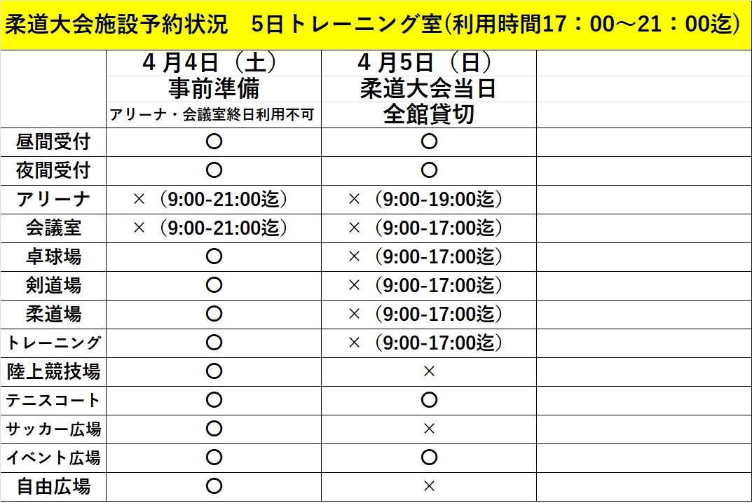 4/4(土) 4/5(日)柔道大会開催日及び事前準備に伴い施設利用状況について2026/3/22/カテゴリ: はなもも体育館, 屋外施設, 温水プール, 総合案内4/5(日)柔道大会開催日 ※下記にある園内駐車場MAPを添付いたしましたのでご確認ください。 ※大会開催日は駐車場が混雑すると思われます。 ※イベント広場の臨時駐車場をご利用ください。 https://koga-kousya.or.jp/undokoen/wp-content/uploads/2025/02/header_logo_white-1-300x135.png 0 0 スタッフ https://koga-kousya.or.jp/undokoen/wp-content/uploads/2025/02/header_logo_white-1-300x135.png スタッフ2026-03-22 09:30:132026-03-22 09:54:044/4(土) 4/5(日)柔道大会開催日及び事前準備に伴い施設利用状況について
